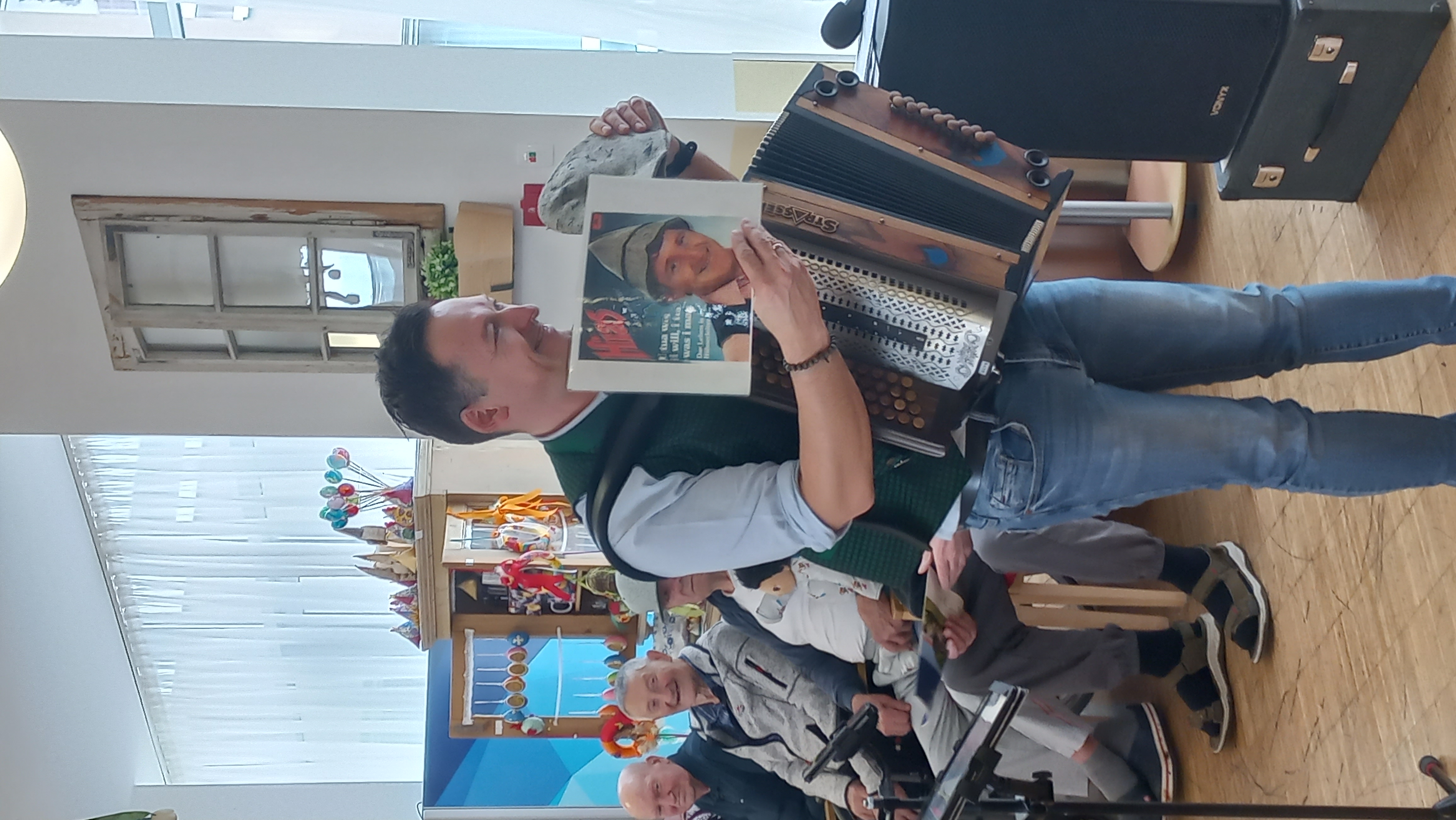Am Donnerstag hatten die Bewohner:innen des SeneCura Sozialzentrums Stainz einen ereignisreichen Tag. Am Vormittag gab es einen Musikworkshop mit Christian Gruber. Der erst Weg führte ihn zu Bewohnerin Klug Aloisia ins Zimmer, sie sagte: „Der Christian ist mein Liebling und die steirische Musik ist mir das Allerliebste.“. Danach ging es in die Gruppe, wo sich bis zu 50 Bewohner:innen einfanden. Bei der flotten steirischen Musik ließen es sich so mache Bewohner:innen nicht nehmen, das Tanzbein zu schwingen und andere sangen aus voller Kehle zu den Klängen der Harmonika. Eine lustige Parodie vom bekannten „Hias“ (Erich Mathias Mayer) brachte alle zum Lachen. Doch rhythmische Bewegungen mit bunten Tüchern zu den Klängen von Andreas Gabalier – „I sing a Liad für di“ brachte die Damenherzen zum Schmelzen. So schnell kann eine Stunde vorbei gehen, wenn man Spaß dabei hat. Bei den vielen Besuchen von Christian Gruber erkoren die Bewohner:innen das Lied „ Wir sind eine große Familie“ zu der Abschlusshymne, die natürlich nicht fehlen durfte. Alle Bewohner:innen, EA Mitarbeiter:innen und Reichel Manfred am Mikrofon sangen aus tiefsten Herzen. Doch das aller, allerletzte Stück war der „Aussischmeisser“, eine flotte Polka, die auf Anregung von Krenn Anton gewünscht wurde, brachte noch einmal eine spitzen Stimmung auf. Es ist immer wieder faszinierend zu sehen, was Musik bei den Bewohner:innen bewirkt. „Musik überwindet alle Hürden, verbindet die Herzen und stimuliert das Gehirn, sodass Bewohner:innen Lieder mitsingen, wie Oswald Maria, die oftmals schon wenig sprechen.“, erfreut sich Hausleitung Kathrin Hopfer.
