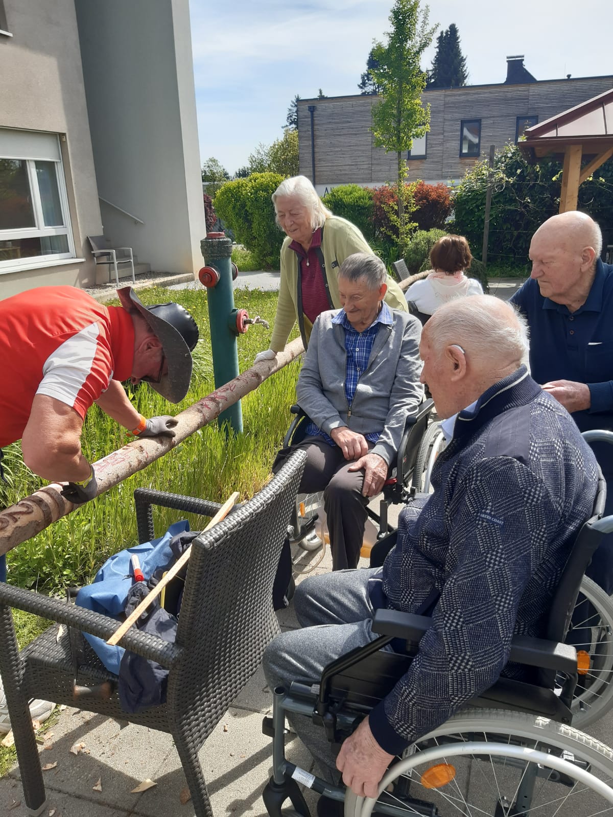 Letztens fand die Veranstaltung „Tanz in den Mai“ im SeneCura Sozialzentrum Stainz statt. Die Bewohner:innen haben in liebevoller Handarbeit den Kranz gebunden sowie den Maibaum geschnitzt. Das Aufstellen des Maibaumes erfolgte durch die Hilfe der Abordnung der FF-Stainz. Einen Ehrengast durfte das Haus zu diesem Anlass auch begrüßen. Der sehr geschätzte Bürgermeister Karl Bohnstingl folgte der Einladung gerne und besuchte das Sozialzentrum. Die gute Zusammenarbeit mit der Gemeinde ist dem Haus ein großes Anliegen, so nehmen die Bewohner:innen sowie Mitarbeiter:innen an verschiedenen Veranstaltungen gerne und regelmäßig teil. Die Veranstaltung wurde musikalisch von Herbert Eberhart auf der Harmonika umrahmt. Für das leibliche Wohl wurde natürlich auch gesorgt und es wurden Würsteln sowie Krapfen zur Stärkung serviert. Das Event sorgte für einiges an Spaß, tolle Gespräche und glückliche Gesichter.