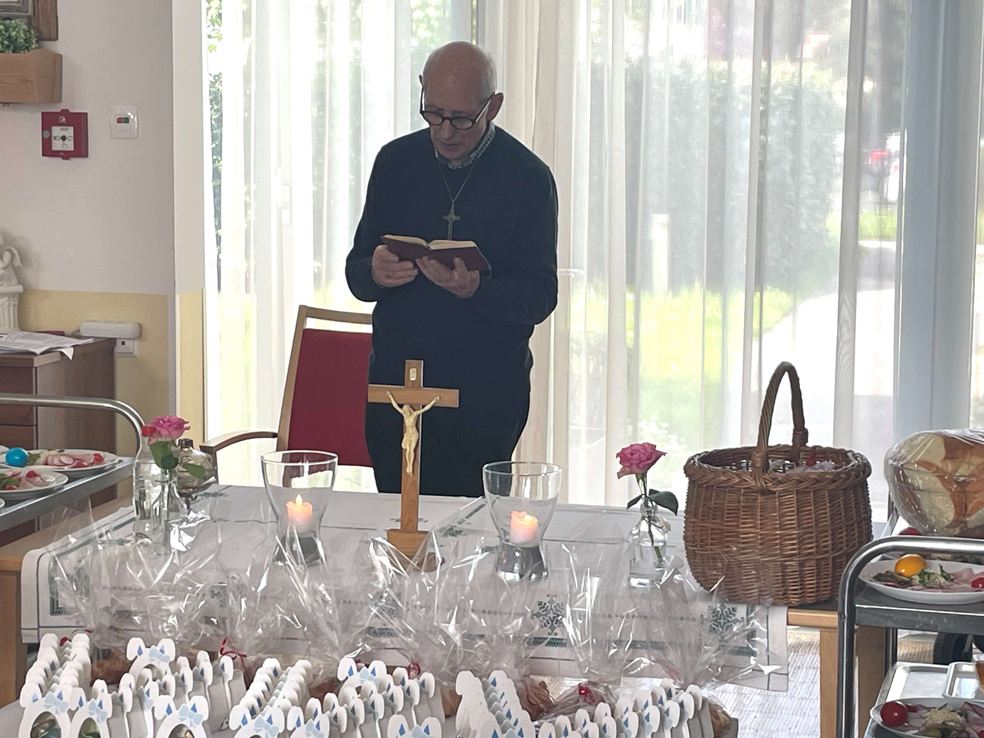 Am Gründonnerstag wurden – ganz traditionell – fleißig Eier gefärbt und Osternester aus Germteig gebacken, die schlussendlich am Karsamstag bei der feierlichen Osterweihe gesegnet wurden. Zudem wurde ein kleiner von Herzen kommender Ostergruß wurde nach der Speisensegnung an die Bewohner:innen verteilt und allen ein frohes Osterfest gewünscht.
