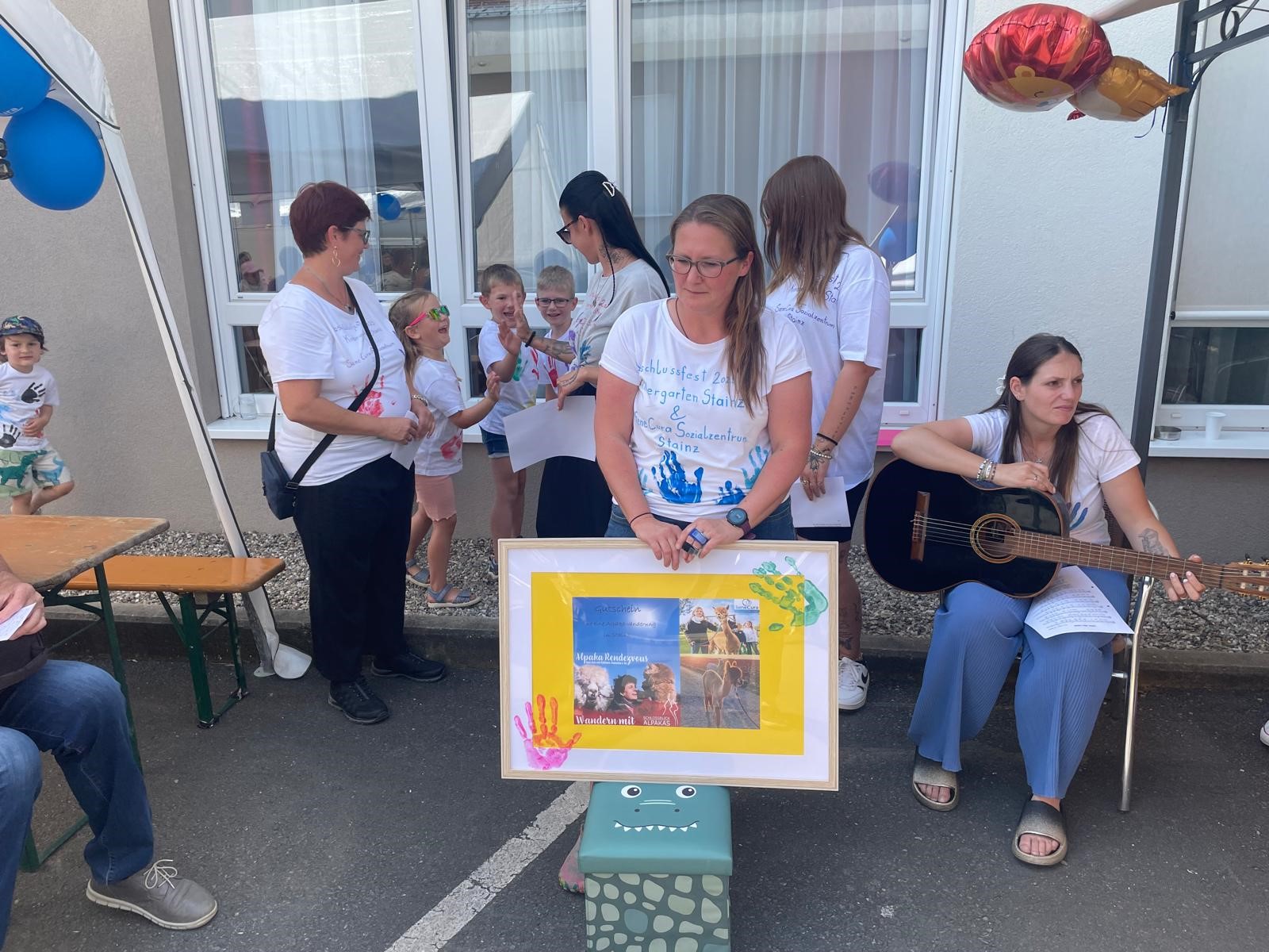Als besonderes Highlight überreichten wir der Kindergartengruppe einen Gutschein für eine Alpakawanderung – ein naturnahes Erlebnis für alle 21 Kinder. Und 11 Bücher zum Thema „Jung und Alt“ – als Impuls für die weitere pädagogische Auseinandersetzung mit dem Generationenthema.