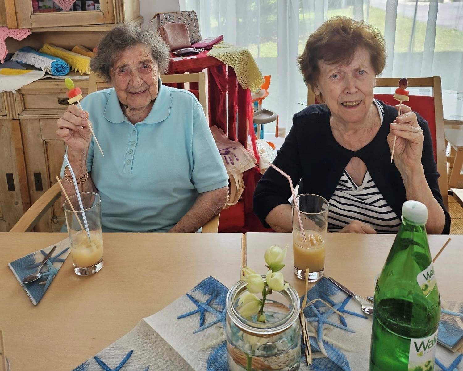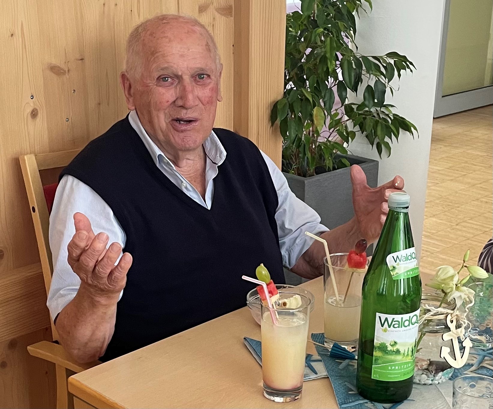 Im SeneCura Sozialzentrum Stainz wird immer gerne gefeiert. So gab es vor Kurzem eine Sommerparty im Haus. Musikalisch heizte der Trompetenexpress so richtig ein – flotte Musik und Lieder zum Mitsingen ließen die heißen Temperaturen und den Alltag vergessen. Für einige Stunden standen Spaß, köstliche Fruchtshakes und kühlendes Eis im Mittelpunkt. Fruchtshakes wie Virgin Sunrise, Bananen- Erdbeer- Mango- Flip und köstliche Eisvariationen wurden den Bewohner:innen serviert. Bewohner Franz Rumpf meinte: „Was will man noch mehr, einfach perfekt.“ Auch die Bewohner:innen Martha Pototschnigg und Ida Gauster genossen den Nachmittag in vollen Zügen. Bewohnerin Annemarie Ganster ging vor der Veranstaltung noch zum Friseur, und hatte viel Spaß. Bewohnerin Gertrude Cigler und Schwester Helga Cserpnyak kamen mit Maskottchen Langohr, der überall dabei ist, zur Party und sangen lautstark mit.