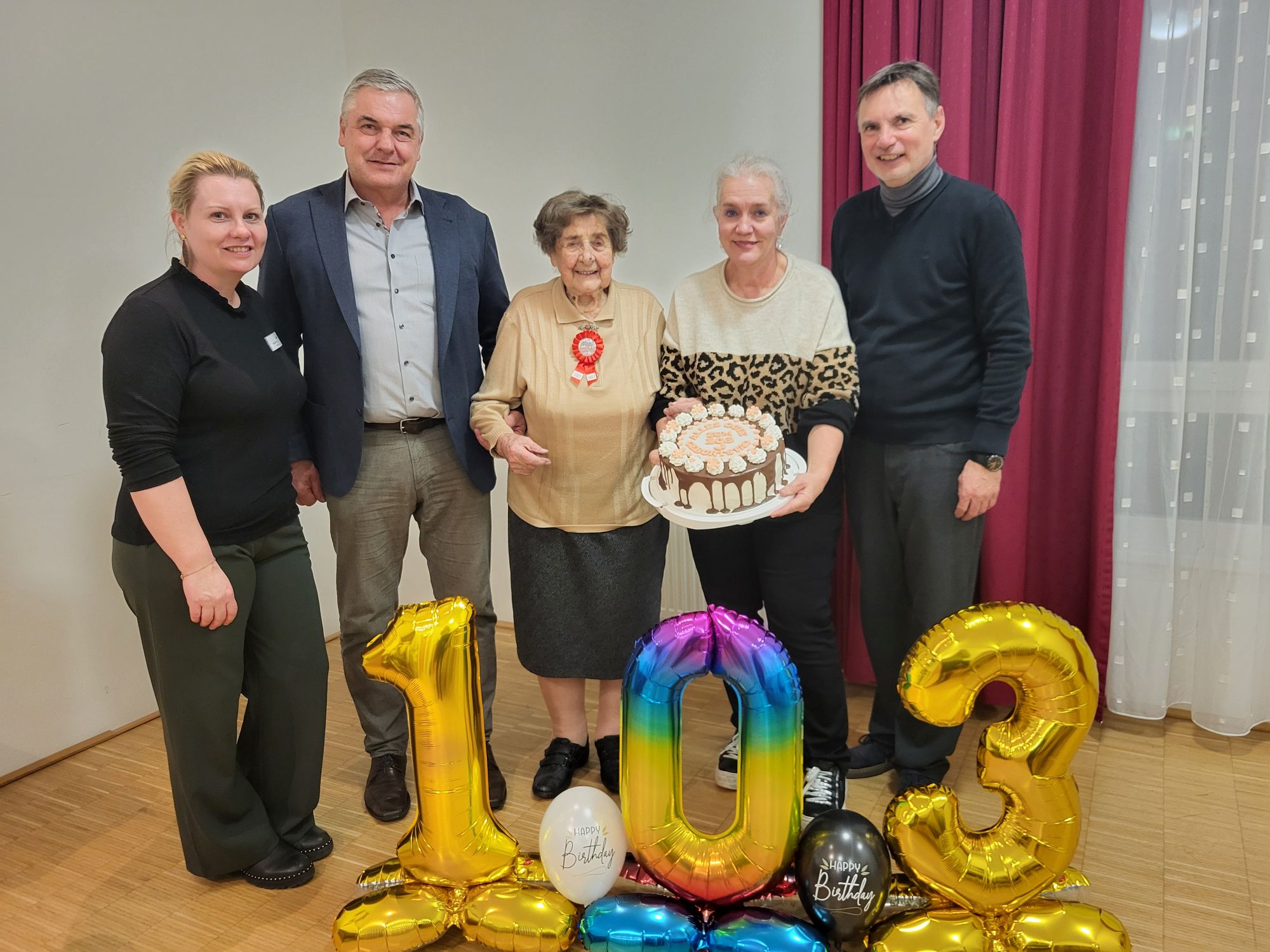 Wenn jemand 103 Jahre jung wird, dann darf gefeiert werden – und wie! Im festlich geschmückten Gemeinschaftsraum des SeneCura Sozialzentrums Stainz stand alles im Zeichen des Geburtstags von Maria Potoschnigg, die als älteste Bewohnerin nicht nur wegen ihres Alters, sondern vor allem wegen ihrer heiteren und herzlichen Art hochgeschätzt wird. Bereits am Morgen begann ihr Ehrentag mit einem ausgiebigen Frühstück mit Speck und Spiegeleiern – ganz nach ihrem Geschmack. Im Laufe des Tages trudelten viele Glückwünsche ein, darunter auch von Bürgermeister Karl Bohnstingl aus Stainz, der mit Blumen und einem Präsent im Gepäck kam. Auch Bürgermeister Karlheinz Schuster aus ihrer Heimatgemeinde Schwanberg ließ es sich nicht nehmen, der Seniorin eine gebundene Ausgabe der Gemeindezeitungen der letzten fünf Jahre zu überreichen. Die Jubilarin nahm die Feierlichkeiten mit viel Freude entgegen: „Bei der Pyjamaparty zu Fasching komm ich heuer als alt’s Weiberl!“, scherzte sie mit einem Augenzwinkern und bewies damit einmal mehr ihren Humor.